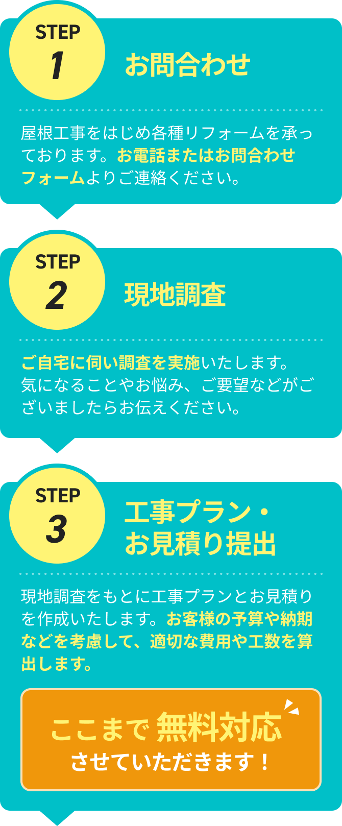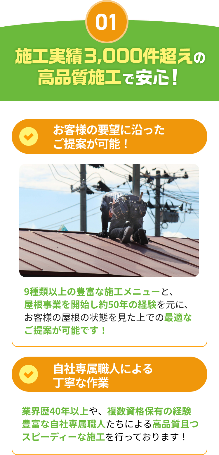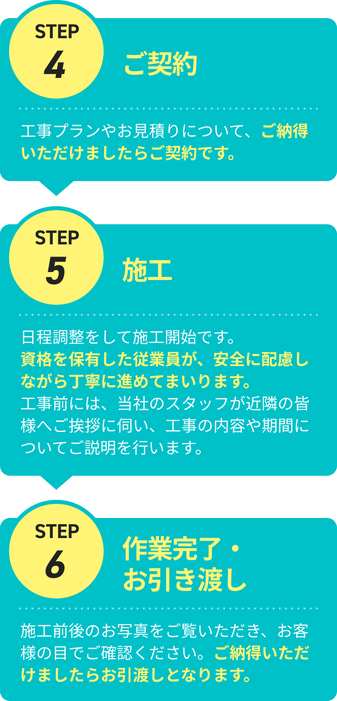 豊富な実績とプロの視点で最適なご提案・施工をいたしますので、お困りの際はお気軽にご相談ください。