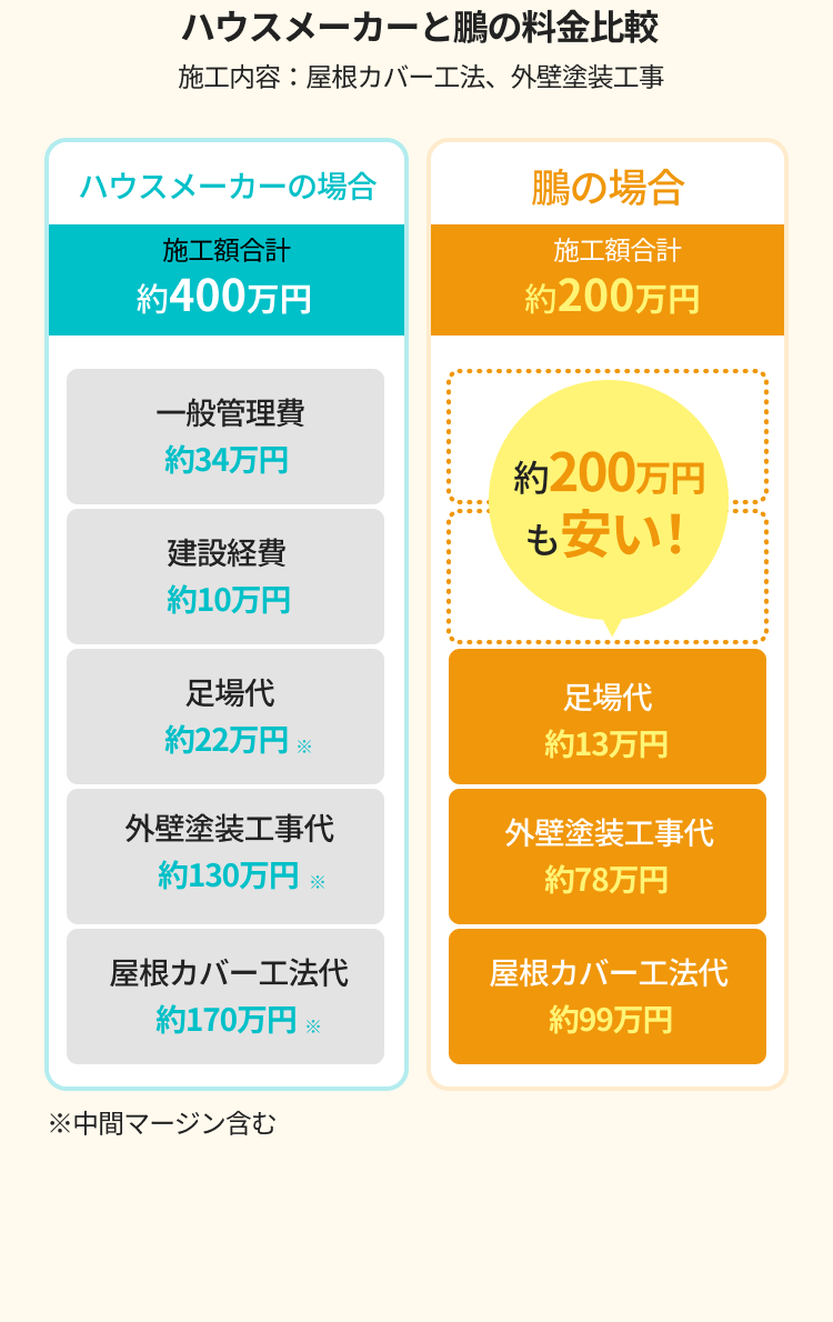 基本的に、工事前半金と工事完了後の残金を2回に分けてお支払いいただく形となります。